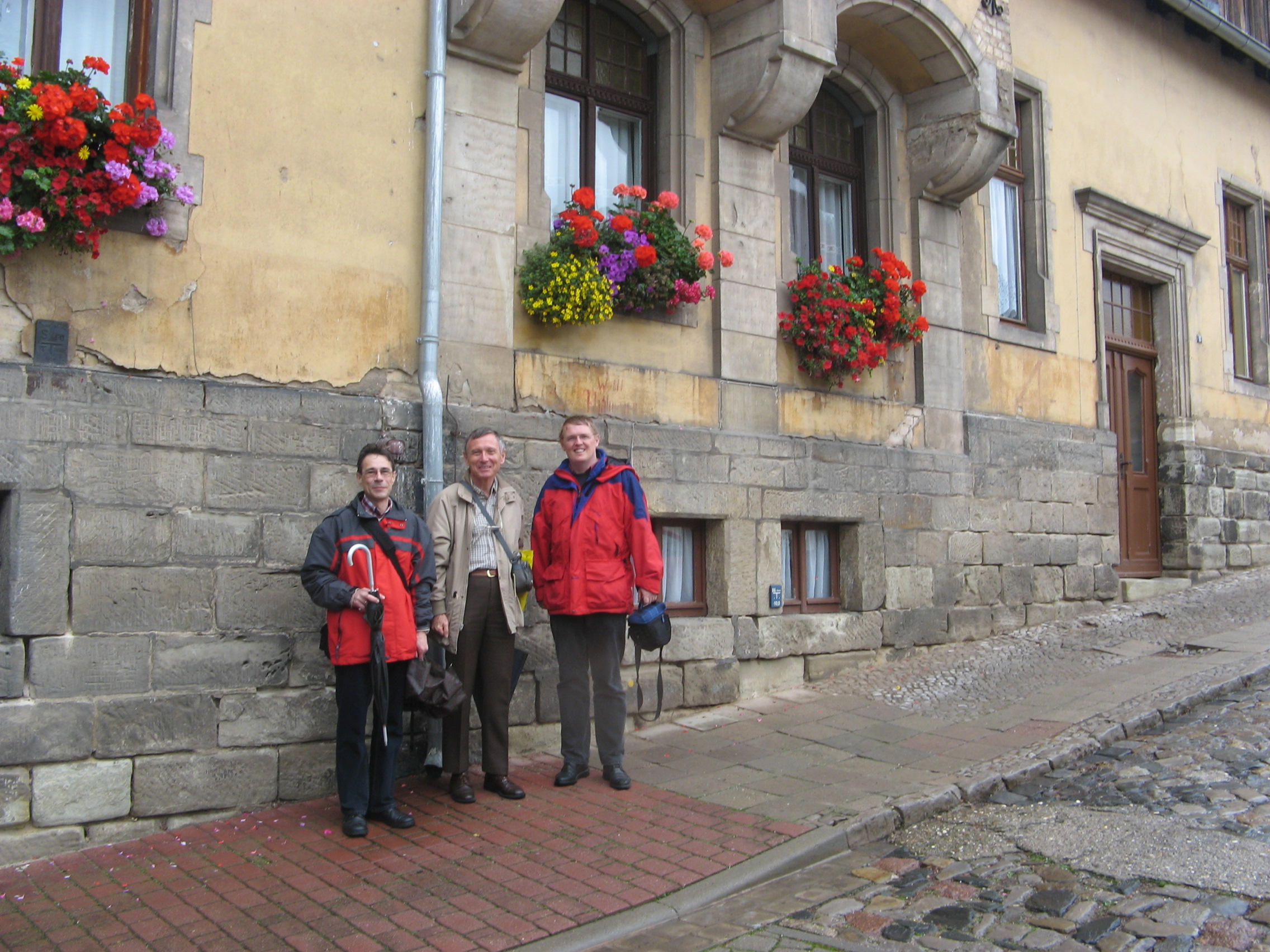 Am 23.09.2008 fand das erste "STEIN" Familientreffen in Staßfurt statt. Seit Mitte 2006 arbeiten Gunther Schulz aus Goslar , Rolf Stein aus Mexiko und Karsten Rudorf aus Salzwedel an der Erforschung ihrer gemeinsamen Vorfahren in Staßfurt. Hierzu werden die Kirchenbücher der St. Johannis Kirche und der St. Petri Kirche ausgewertet. Bei dem Treffen im September 2008 wurde ein Stadtrundgang durchgeführt, das Museum besucht, der Tilly-Saal (mit einer Sonderausstellung) besichtigt und auch das Pfarramt wurde, mit Einsicht in den Kirchenbüchern, besucht. Es war ein schöner gemeinsamer und informationsreicher Tag. Es war auch schön, sich persönlich kennen zu lernen. Danke an Gunther und Rolf ! |